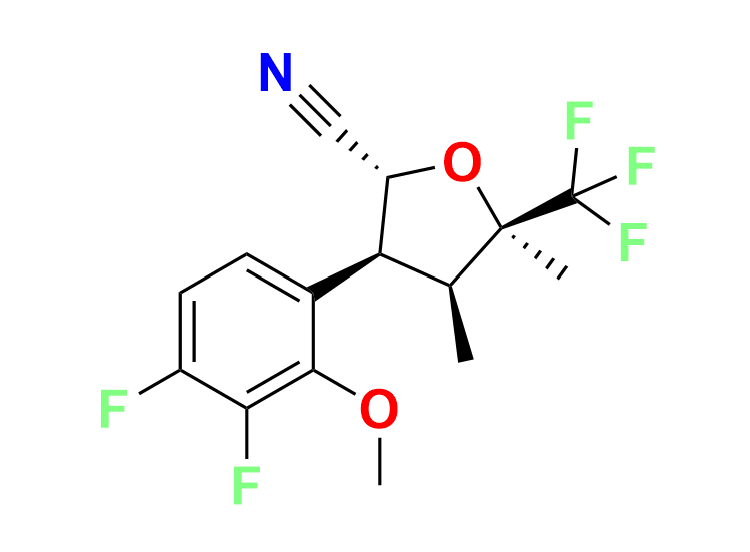 | Smile Code | COC1=C(F)C(F)=CC=C1[C@@H]2[C@H](C)[C@@](C(F)(F)F)(C)O[C@H]2C#N |
