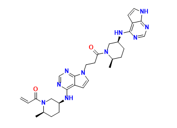 | Synonyms | 1-((2R,5S)-5-((7-(3-((2R,5S)-5-((7H-pyrrolo[2,3-d]pyrimidin-4-yl)amino)-2-methylpiperidin-1-yl)-3-oxopropyl)-7H-pyrrolo[2,3-d]pyrimidin-4-yl)amino)-2-methylpiperidin-1-yl)prop-2-en-1-one |