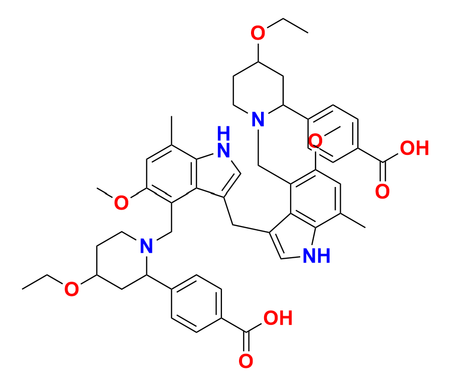 | Synonyms | 4,4'-(((methylenebis(5-methoxy-7-methyl-1H-indole-3,4-diyl))bis(methylene))bis(4-ethoxypiperidine-1,2-diyl))dibenzoic acid |